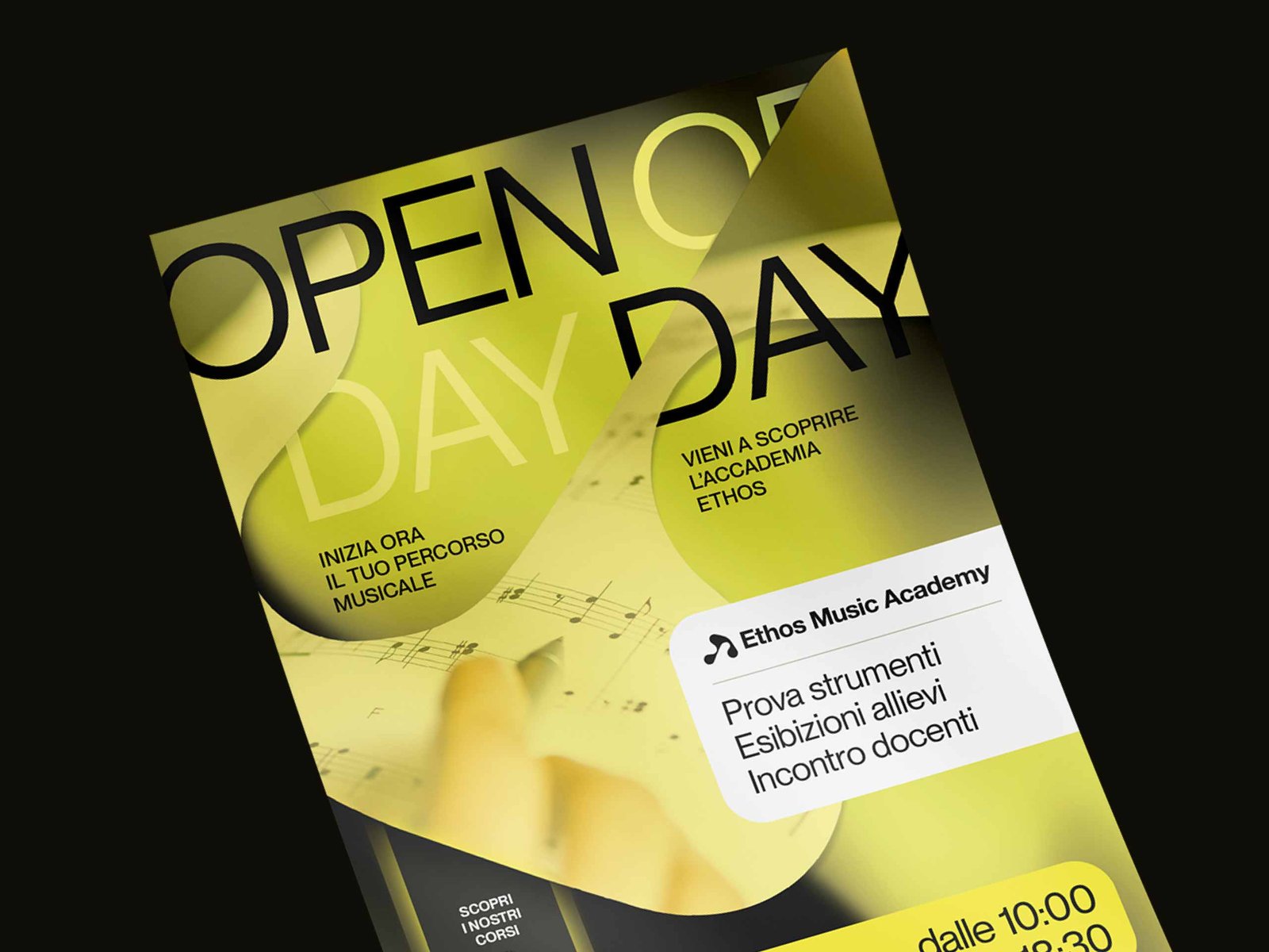 The visual approach stems from the need to represent a contemporary idea of music—open to experimentation yet grounded in solid training. For this reason, the design starts from the most immediate and universal musical symbol—the note—reinterpreted through a non-conventional, soft, and fluid form that recalls the curves and volumes of musical instruments and the movement of sound itself.