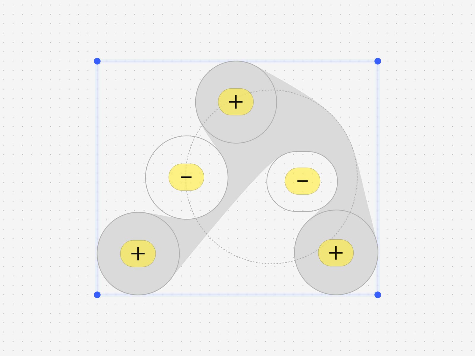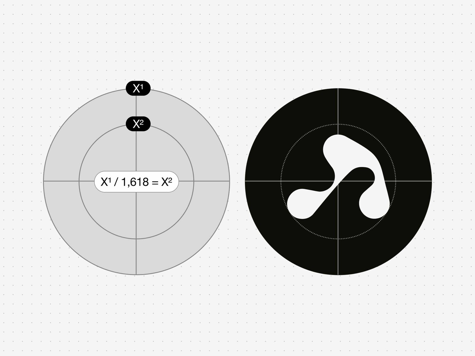Il segno è costruito secondo un approccio rigoroso ispirato alle tecniche compositive di Armin Hofmann, basato su un sistema di cerchi e tangenti che definiscono la struttura del logo. Questo metodo, adottato anche nel celebre logo di Aphex Twin (Mark Holt / 8vo), consente di generare forme organiche partendo da regole geometriche precise, mantenendo un equilibrio costante tra controllo e istinto.