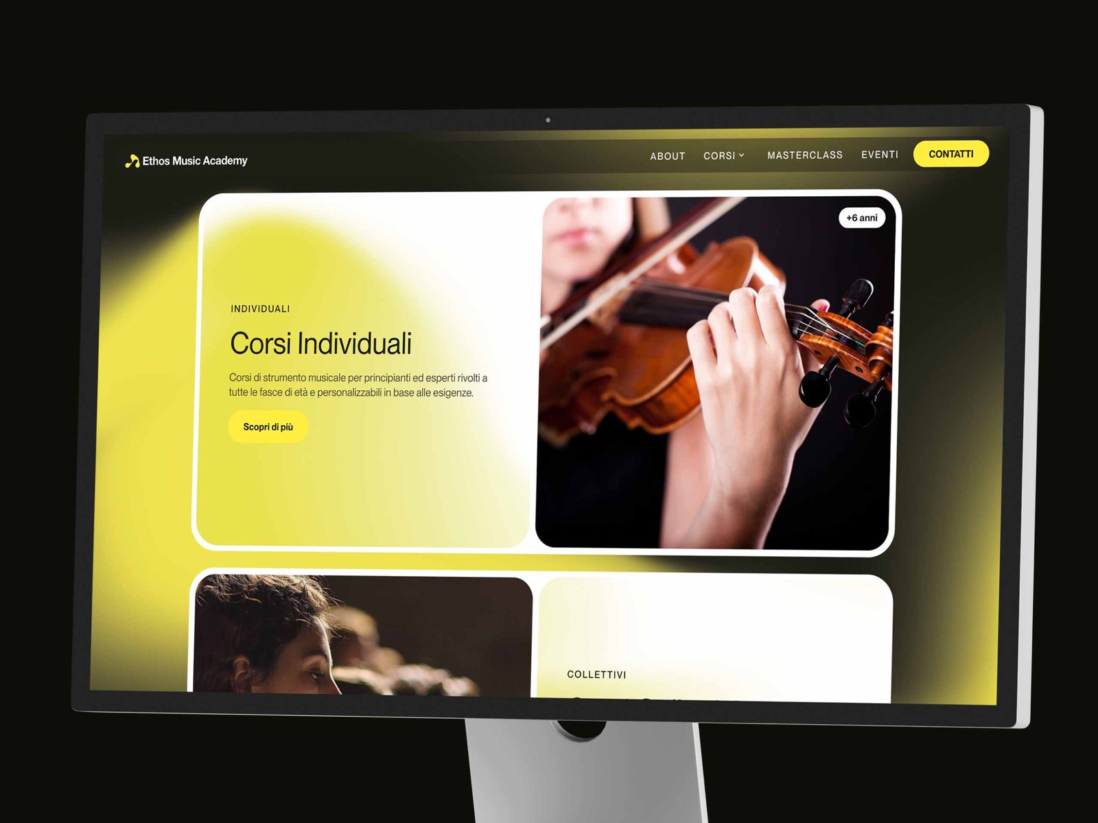 In continuità con il lavoro di identità, è stato sviluppato anche il sito web dell’Accademia, curandone UX e UI per tradurre i valori del brand in un’esperienza digitale chiara, coerente e accessibile.