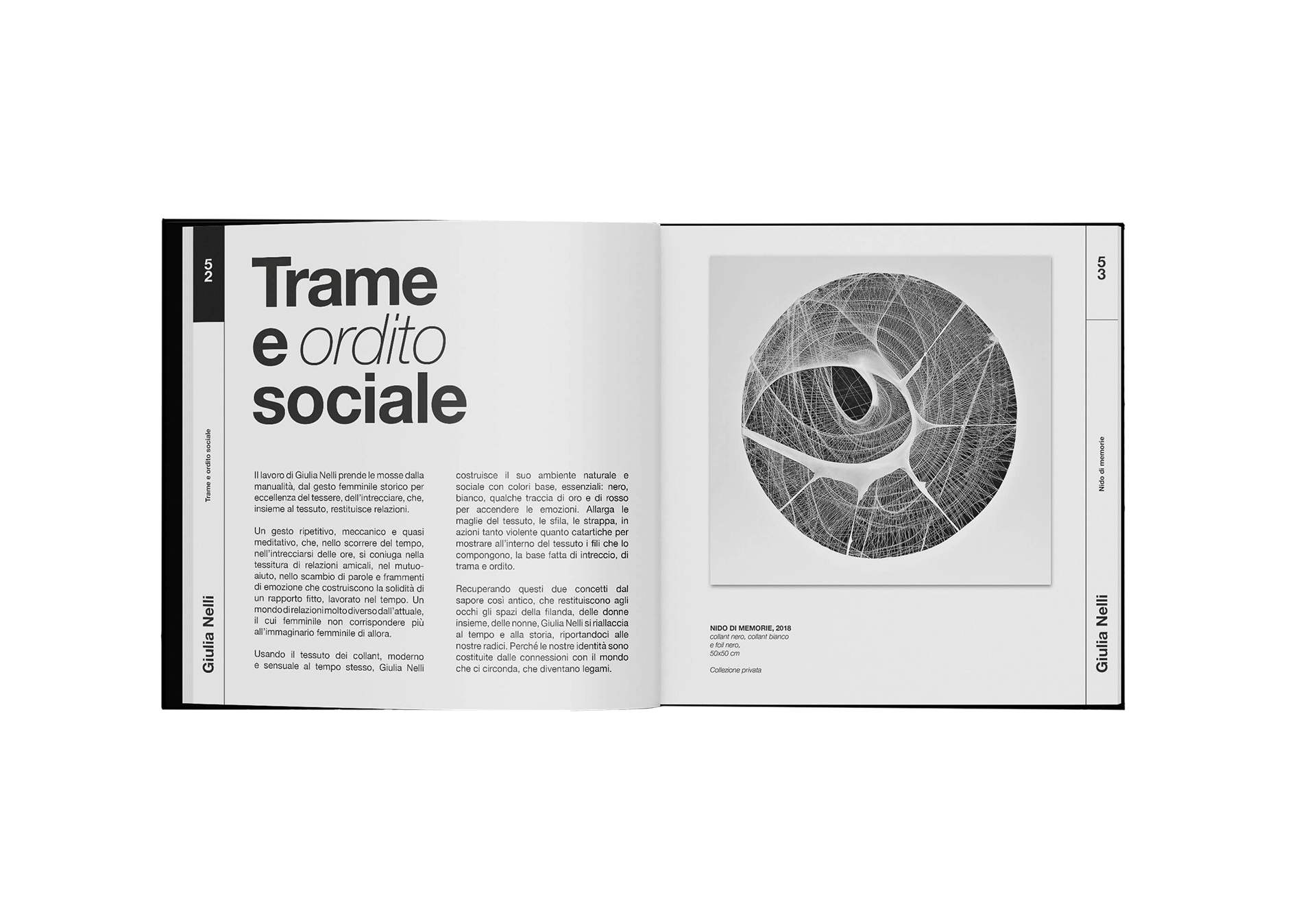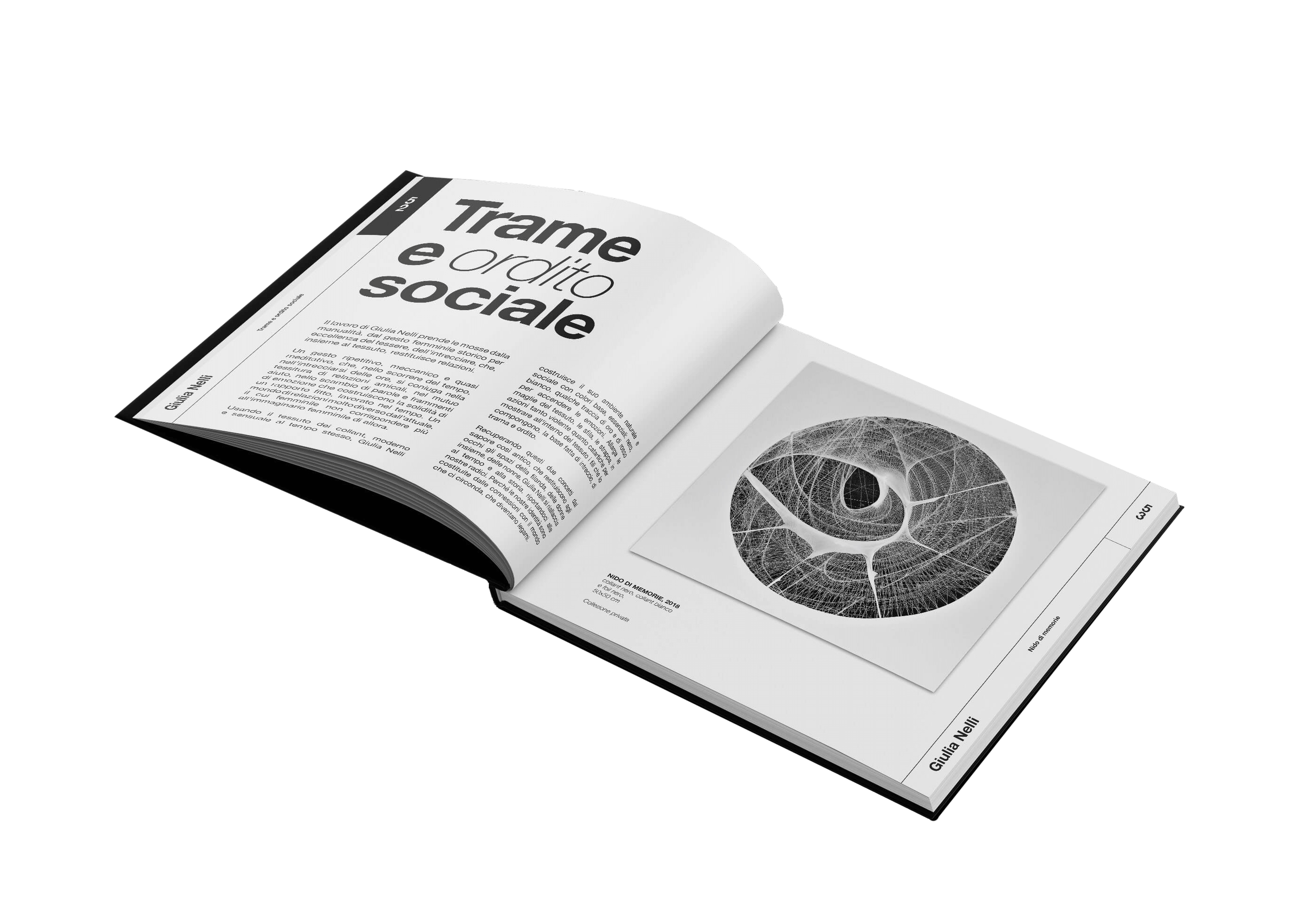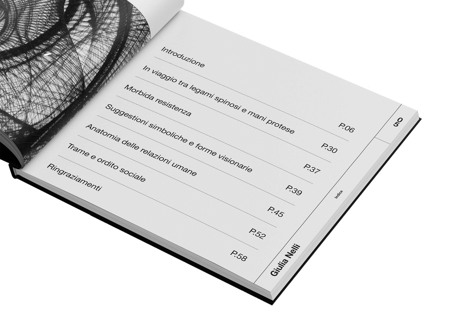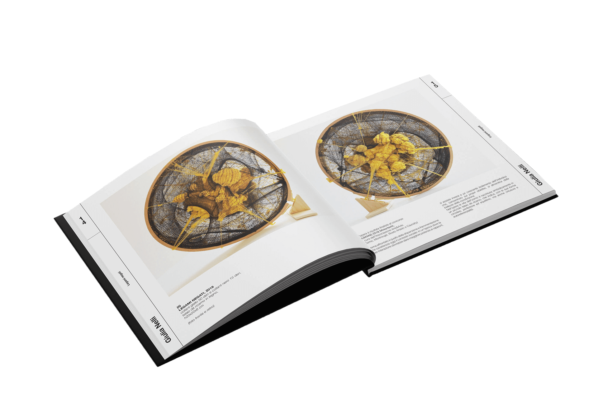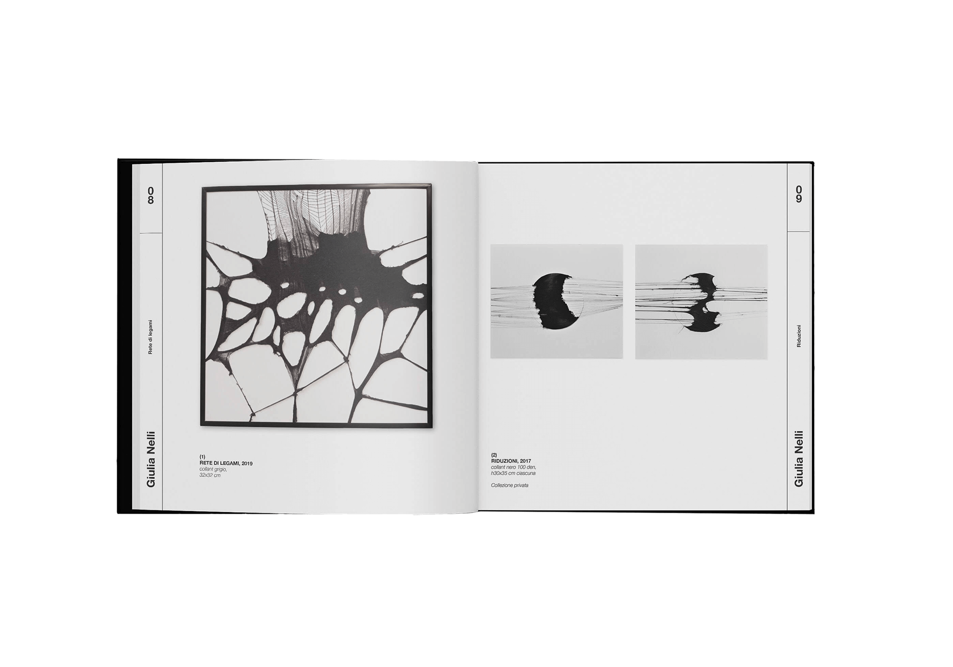 Progetto editoriale per la monografia di presentazione del libro di Giulia Nelli, artista che utilizza le calze a rete come elemento materico e concettuale nelle proprie opere.