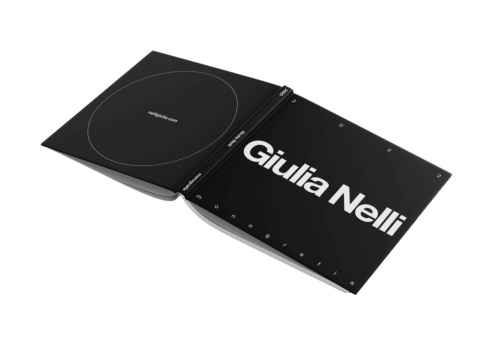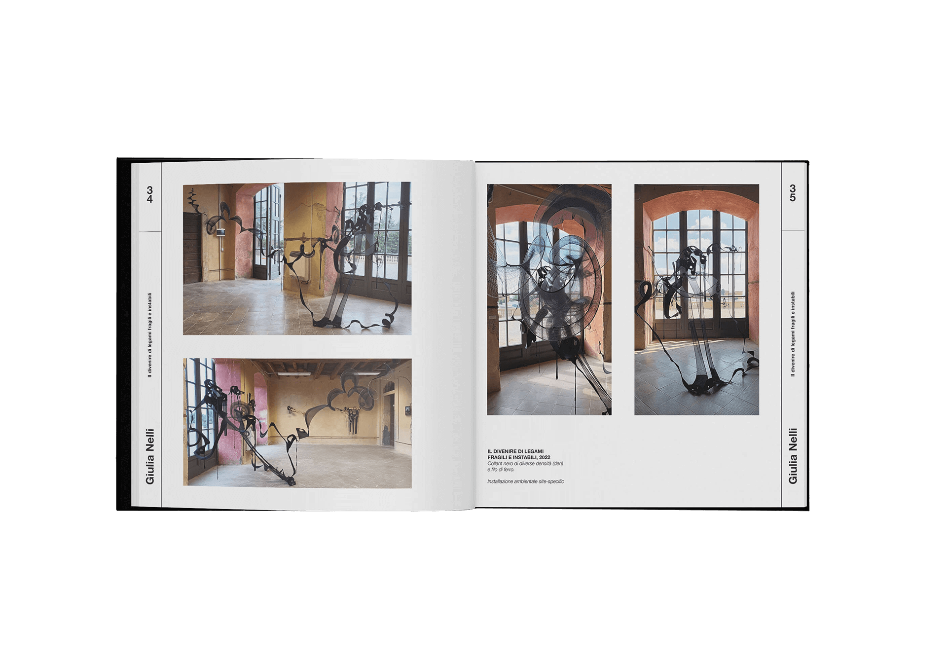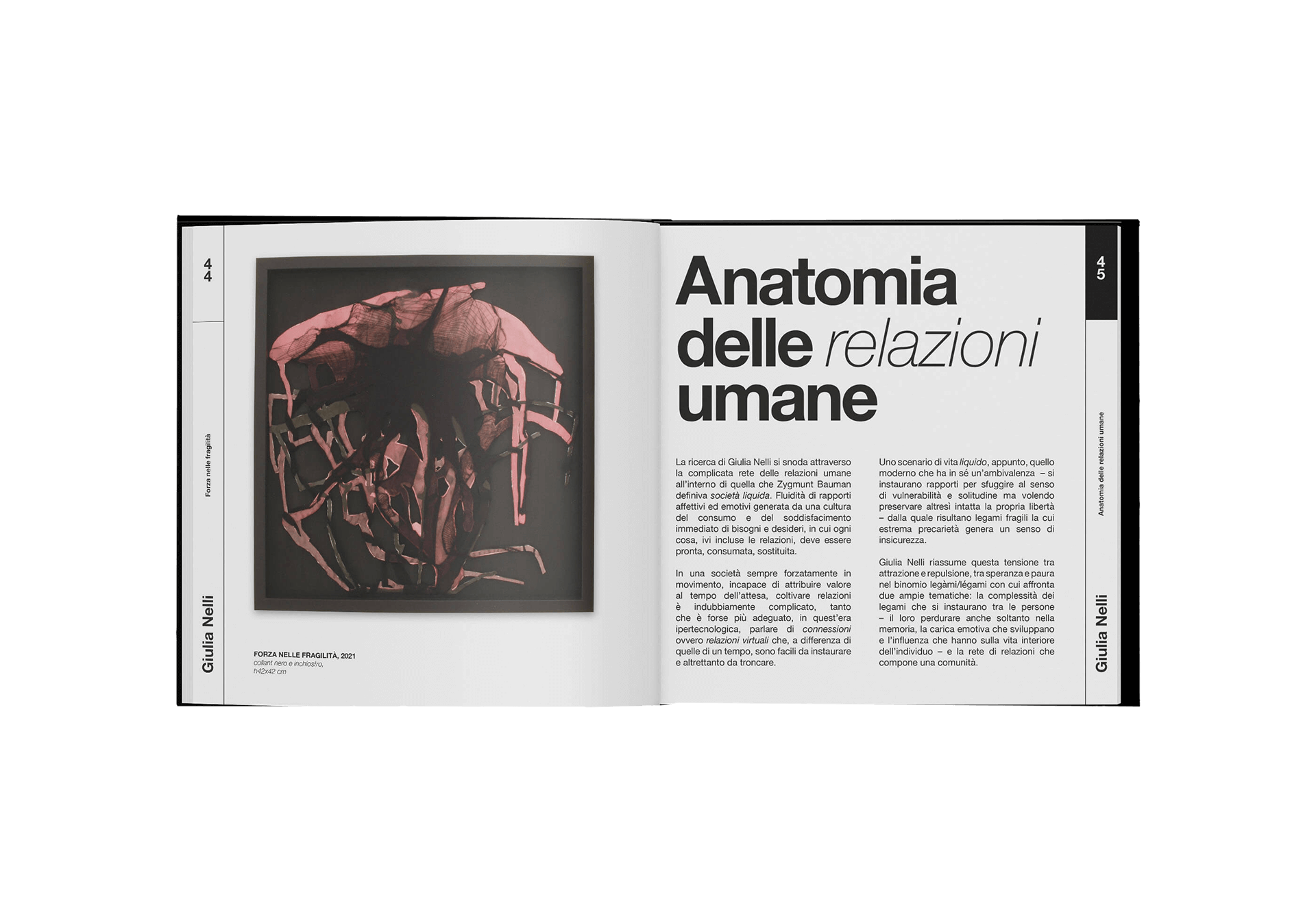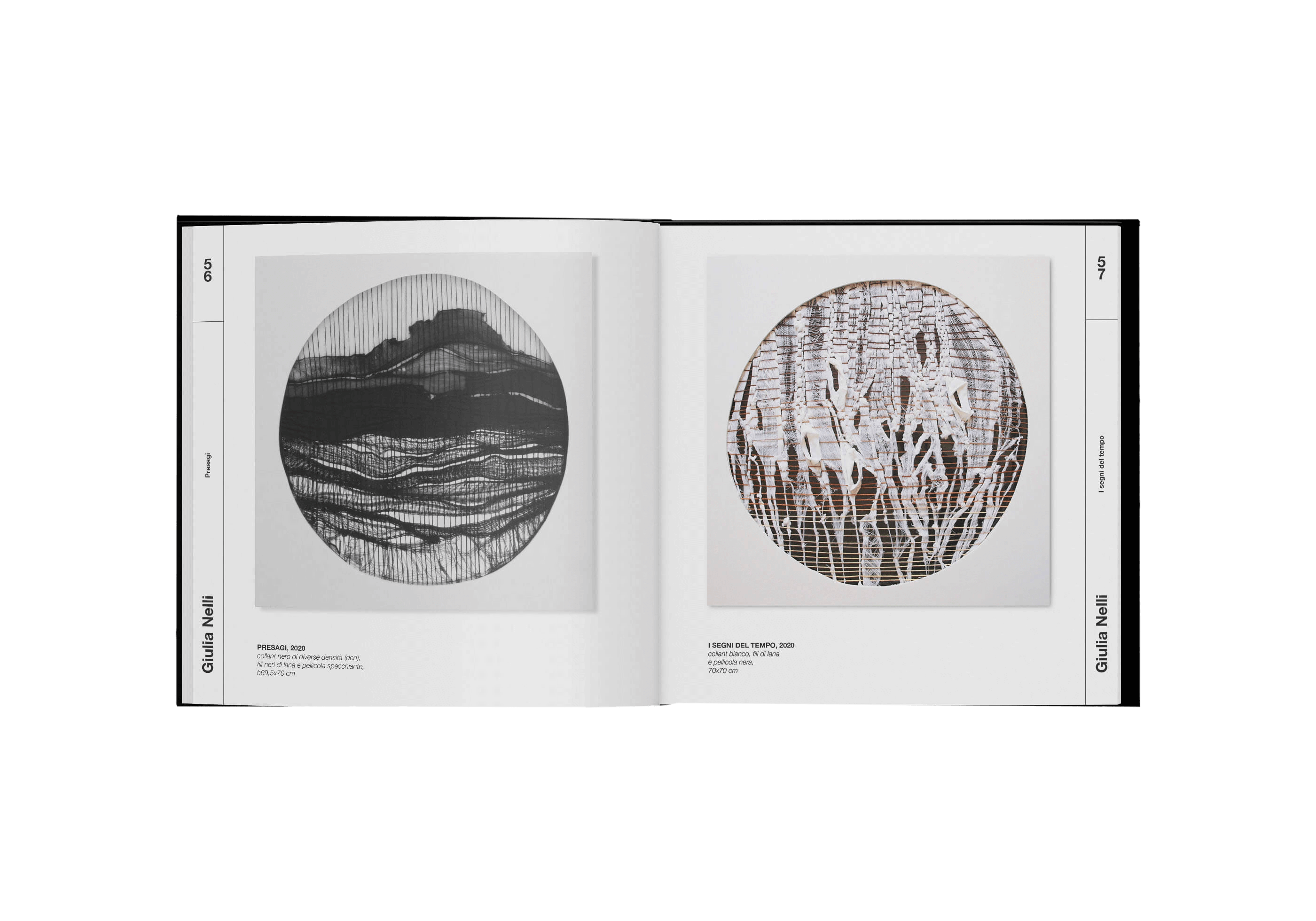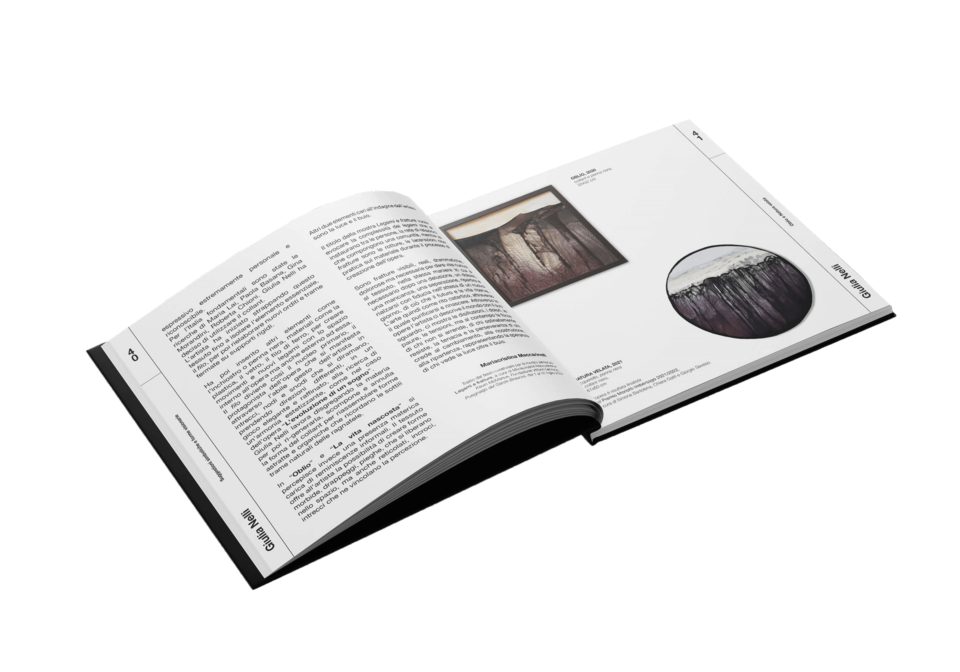 Progetto editoriale per la monografia di presentazione del libro di Giulia Nelli, artista che utilizza le calze a rete come elemento materico e concettuale nelle proprie opere.