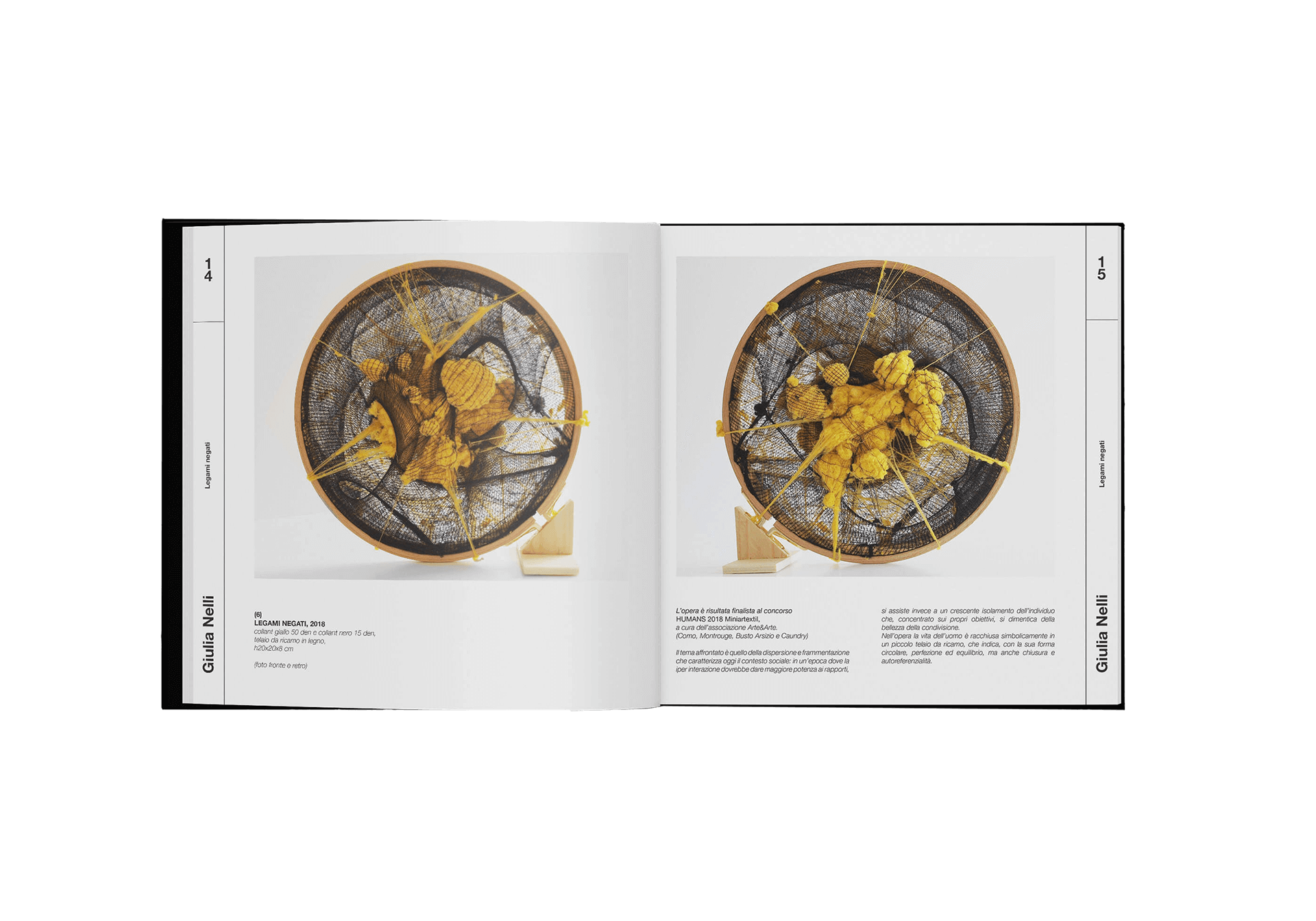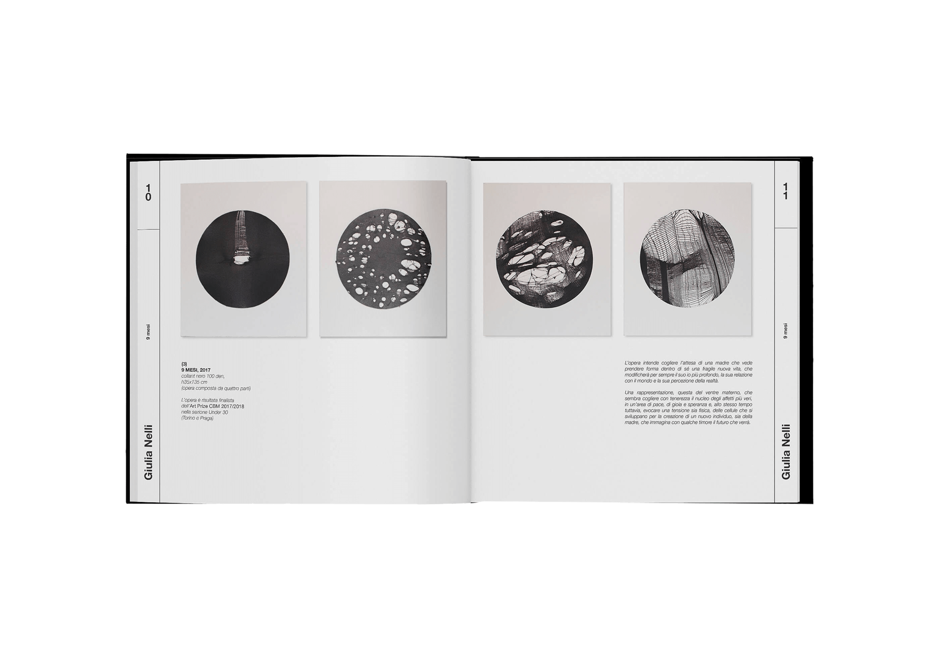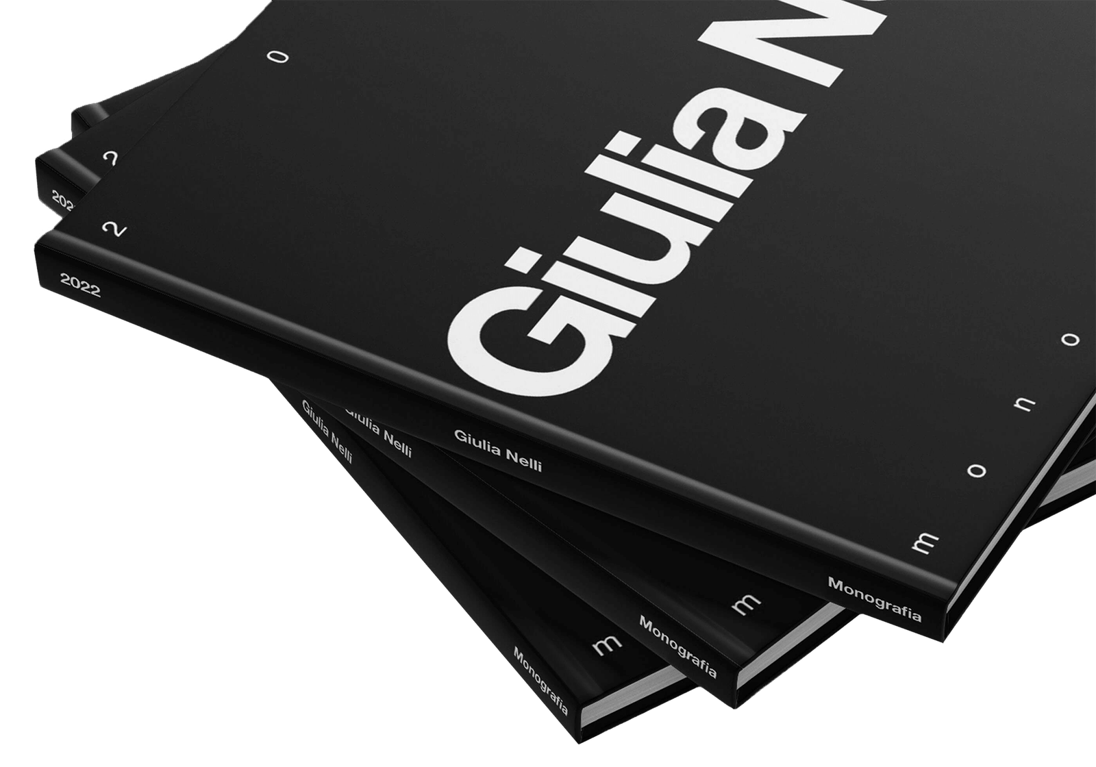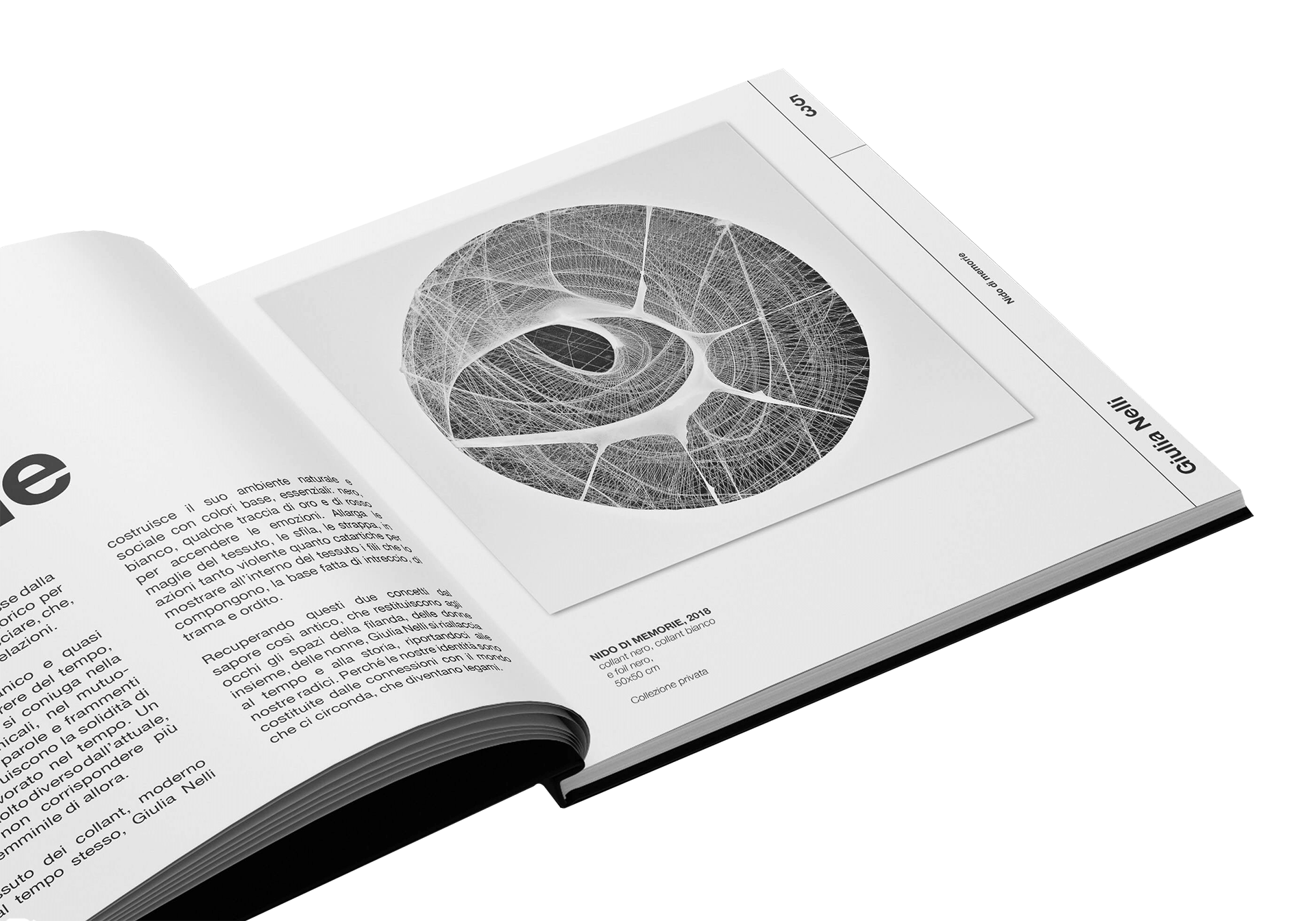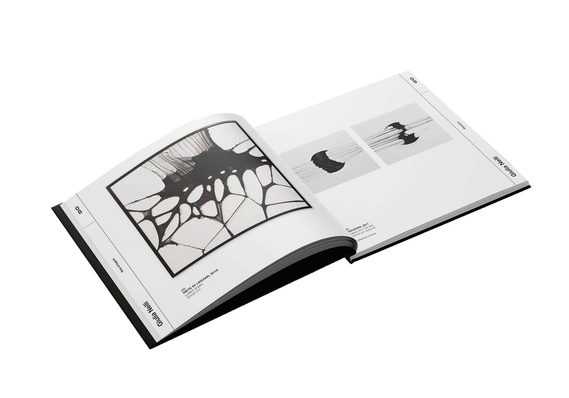 Progetto editoriale per la monografia di presentazione del libro di Giulia Nelli, artista che utilizza le calze a rete come elemento materico e concettuale nelle proprie opere.