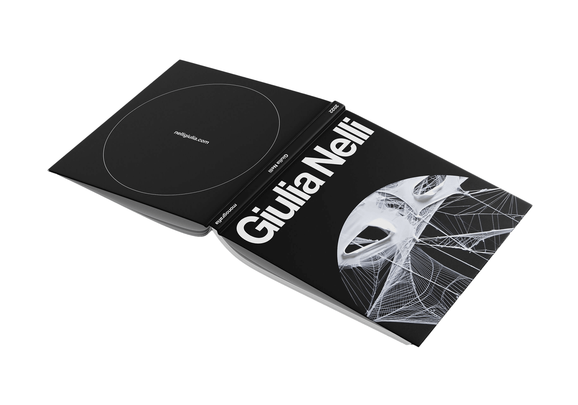 Editorial project for the monograph presenting the book by Giulia Nelli, an artist who uses fishnet stockings as both a material and conceptual element in her work.